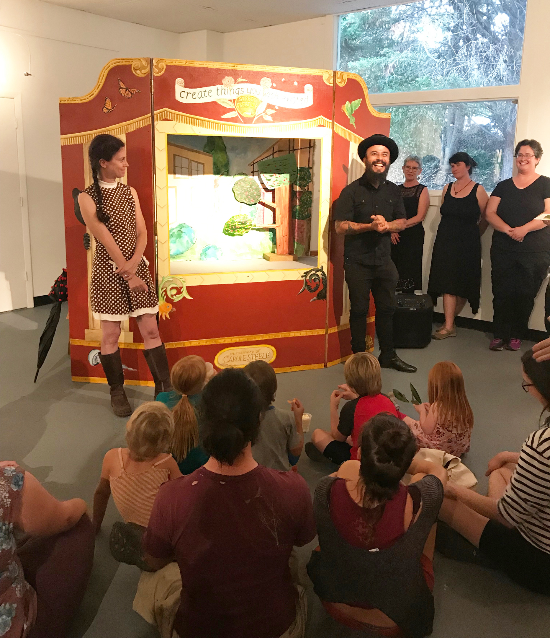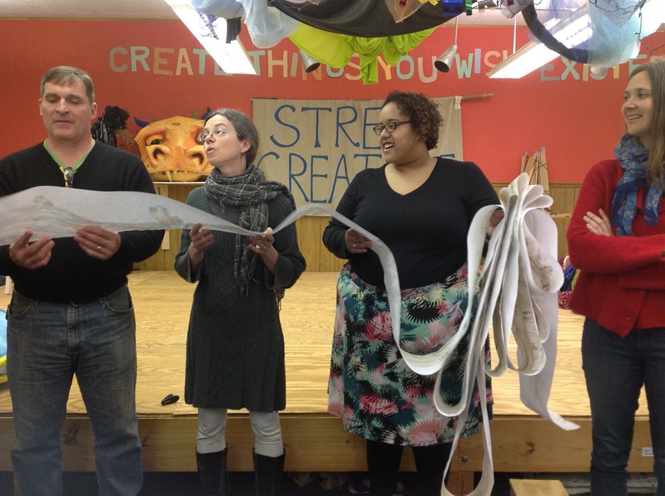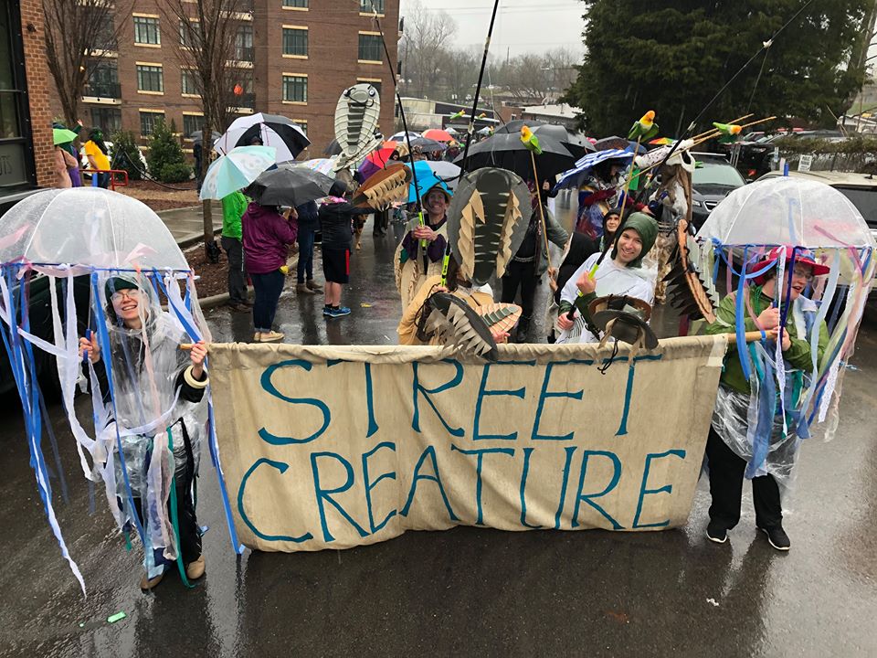 I made my first puppet in 2003 as a way to bring visual impact to a weekly peace vigil in Los Angeles. I’m still bringing puppets to protests and also creating parades and pageants that celebrate nature. I am a founder of the Street Creature Puppet Collective and help manage the Puppet Clubhouse, a community art space in Asheville, NC. I love making giant puppets, shadow puppets, lantern parades, crankies and more. I also teach puppetry to kids and community groups.